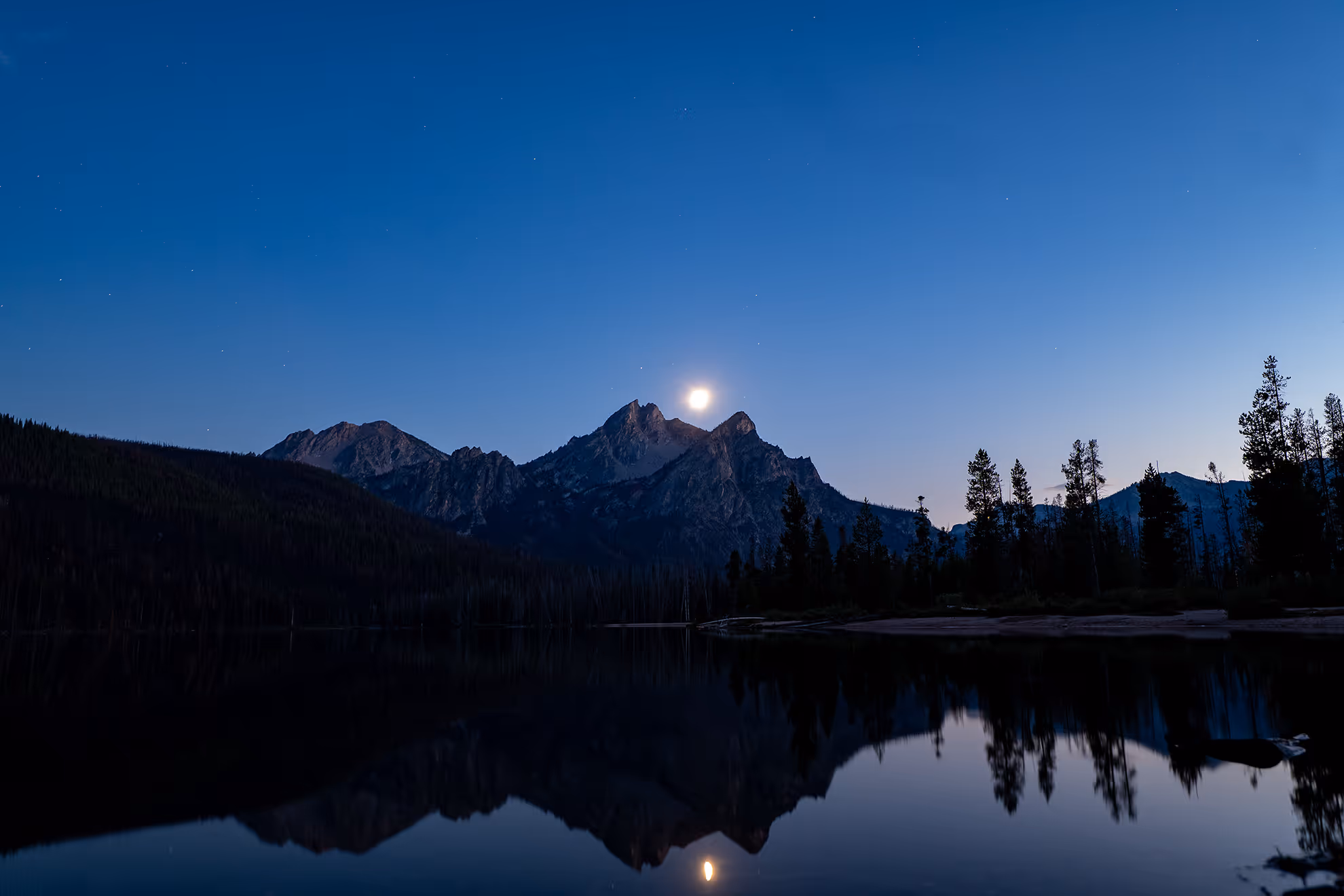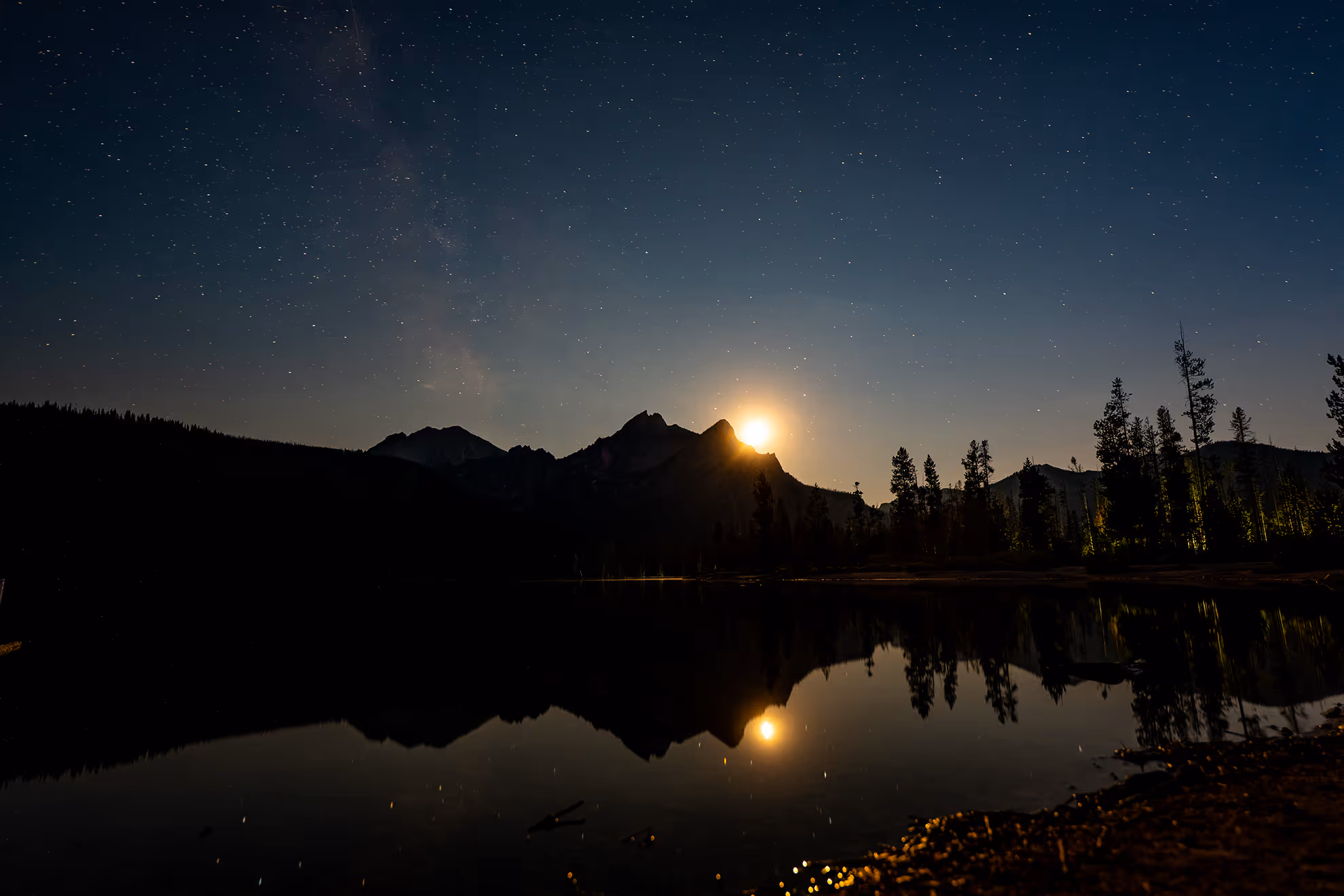 There was a third quarter moon when I shot these at Stanley Lake, and it was my third time attempting to do some astrophotography. I learned a lot of new things this time around, including that the moon actually makes for an amazing addition to astrophotography. I often hear about people trying to avoid it, but the last two times I've shot with it out in the sky, it made for some really unique images. The other takeaway was that the Milky Way and stars actually move very quickly, and non-linearly over the course of the night. This makes for some amazing tracking shots.